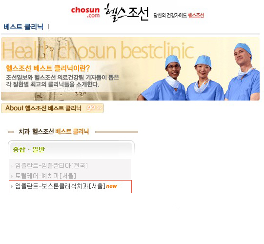 " 2007 헬스조선 베스트클리닉 - 치과 / 임플란트" 부분에 선정되었습니다.